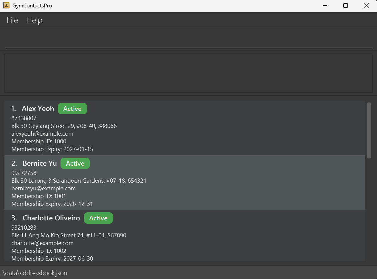 GymContactsPro is a desktop application that helps gym managers efficiently manage and organize their members.