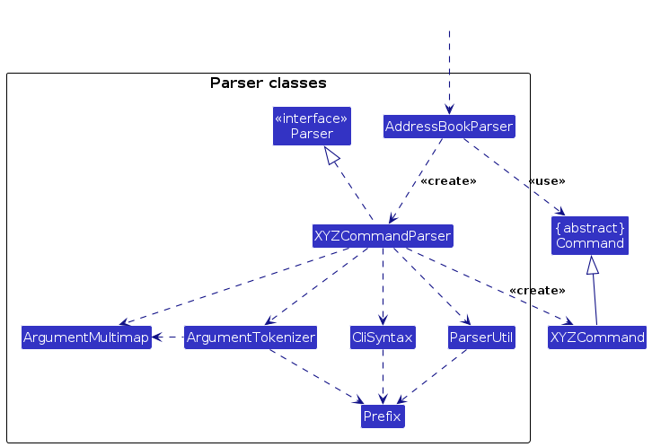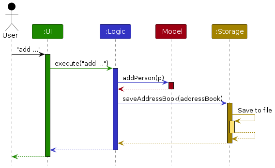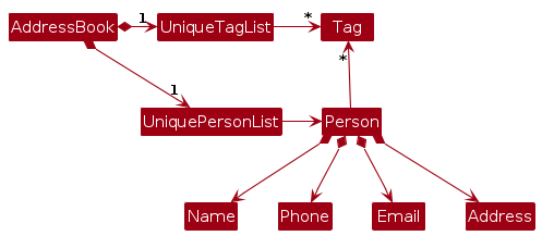 AddressBookStorage and UserPrefStorage, which means it can be treated as either one (if only the functionality of only one is needed).Model component (because the Storage component's job is to save/retrieve objects that belong to the Model)Classes used by multiple components are in the seedu.address.commons package.